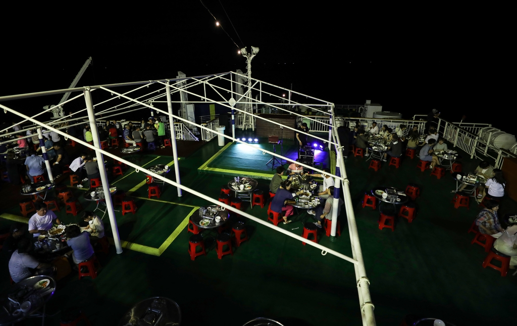 공연이 끝난 뒤 승객들은 선상 포장마차, 선내 카페에서 늦게까지 바다 위 주말 밤을 즐겼다.