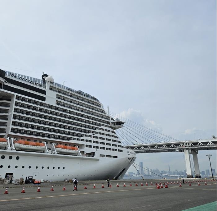 | ▲ 일본 요코하마항에서 출발을 기다리는 MSC 크루즈. 5천여명의 승객이 한꺼번에 기항지 투어에 나선다. [독자 제공] |