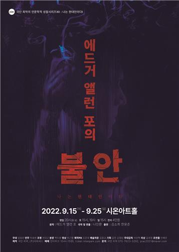 ▲ 연극 '에드거 앨런 포의 불안' = 극단 피악이 연극 '에드거 앨런 포의 불안'을 9월 15∼25일 서울 대학로 시온아트홀에서 공연한다.