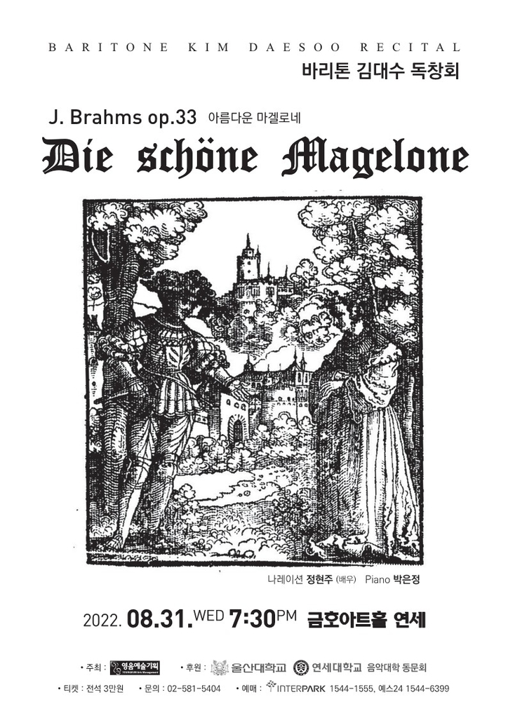 김대수는 브람스의 연가곡 '아름다운 마겔로네'를 들려주며 피아니스트 박은정이 반주자로 함께한다.