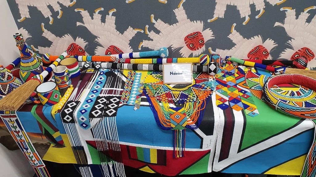 | ▲ 색감이 선명하고 다채로운 은데벨레족 전통공예품 (프리토리아=연합뉴스) 김성진 특파원 = 20일(현지시각) 주남아공 한국문화원에 전시된 남아공 전통공예품 중의 하나인 은데벨레족 공예품. 2022.5.20 sungjin@yna.co.kr |