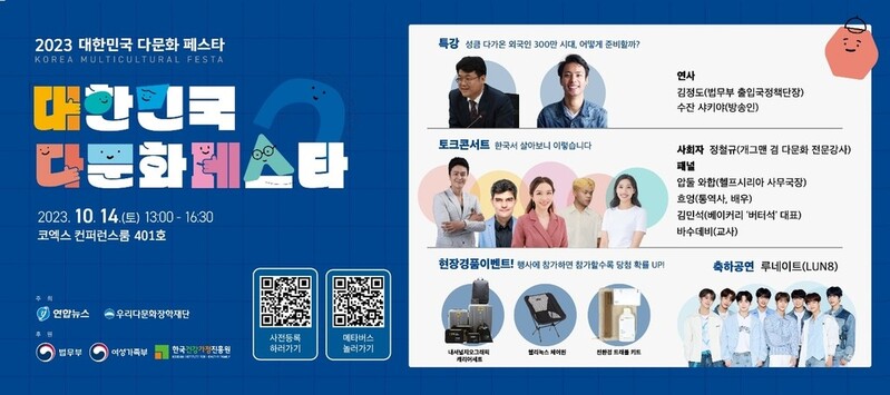(서울=연합뉴스) 성도현 기자 = 정부 및 유관 기관과 정계·학계 전문가, 다문화 가족 등 300여 명이 참석하는 다문화 축제 '2023 대한민국 다문화 페스타(대다페)'가 14일 서울 강남구 코엑스 컨퍼런스룸에서 열린다.