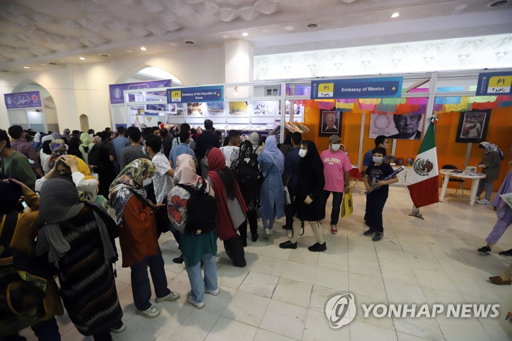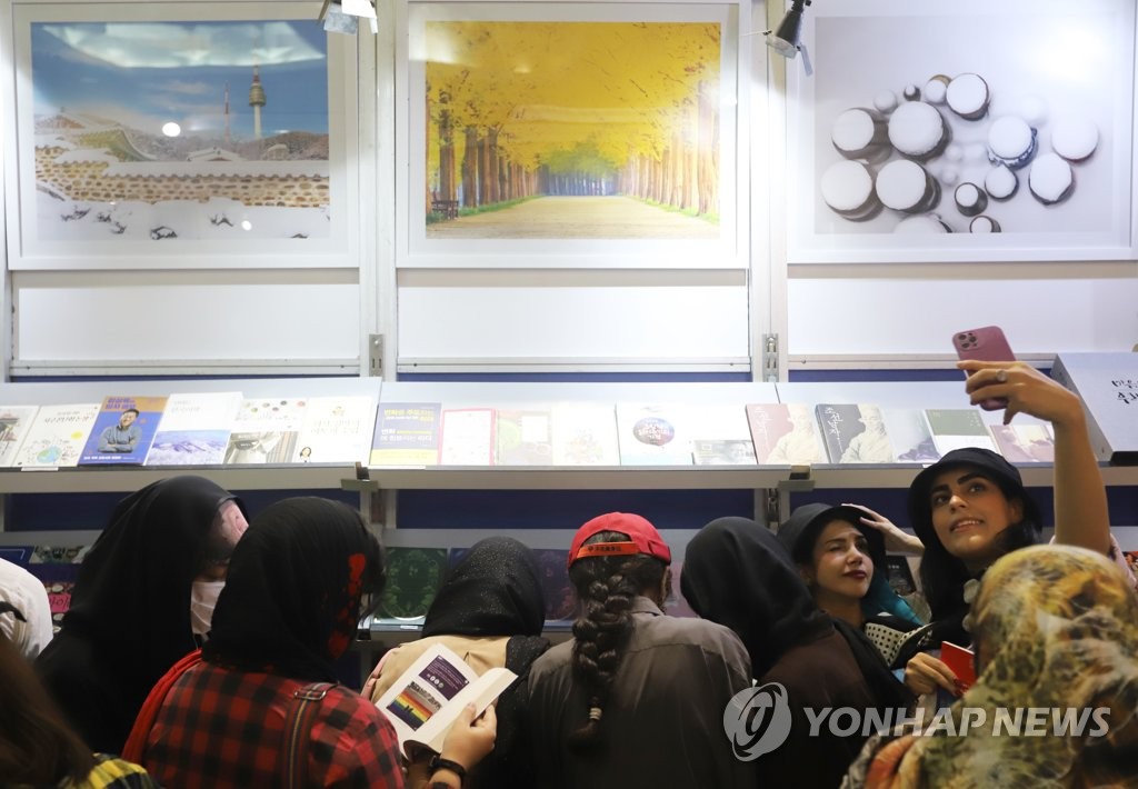 (테헤란=연합뉴스) 이승민 특파원 = 12일(현지시간) 이란 테헤란 '그랜드 무쌀라'에서 열린 이란 국제 북페어 행사장 2층. 유독 한 곳에 인파가 몰려있습니다.