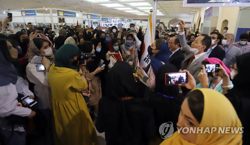 | ▲ '한국 대사님과 사진 찍고 싶어요' (테헤란=연합뉴스) 이승민 특파원 = 12일(현지시간) 이란 테헤란 '그랜드 무쌀라'에서 열린 이란 국제 북페어 한국 부스 앞에 윤강현 주이란 한국대사와 사진을 찍으려는 인파가 모여있다. 2022.5.13 logos@yna.co.kr |