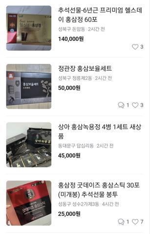 당근마켓에는 홍삼을 검색하면 홍삼정 등이 이미 거래완료 된 경우도 찾아볼 수 있었다.
