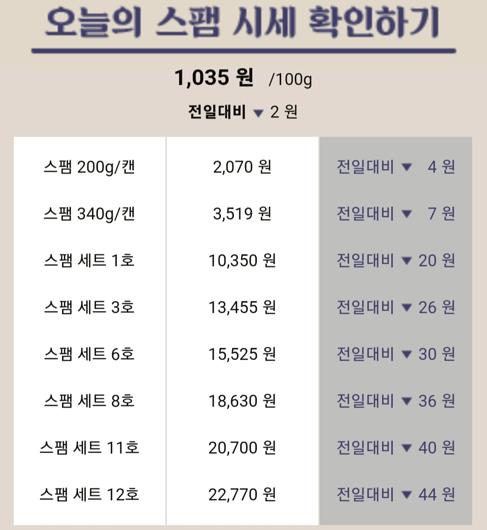 3일 기준 중고나라에서 판매 중인 스팸 클래식(200g) 1캔의 가격은 평균 2천70원으로, 원가인 4천780원의 절반에 못 미치는 수준이다.