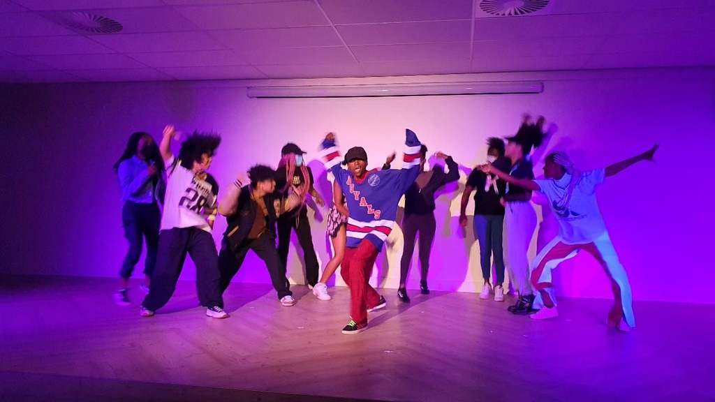 | ▲ 'K-팝 댄스는 이렇게 하는 거야' (프리토리아=연합뉴스) 김성진 특파원 = 27일(현지시각) 주남아공한국문화원에서 공연하는 현지 강사와 친구들. 2022.5.28 sungjin@yna.co.kr |