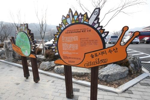 이 지역을 오다가다 봤던 달팽이 모형의 홍보판에 쓰인 '슬로시티 수산'이라는 글귀가 마치 '치유'를 상징하는 것처럼 보였다는 게 그의 설명이다.