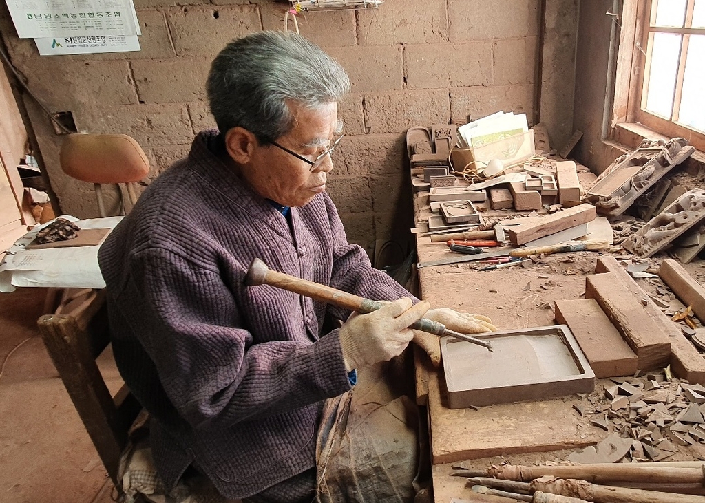 | ▲ 자석벼루 제작 시연하는 신명식 장인 권정상 촬영 |