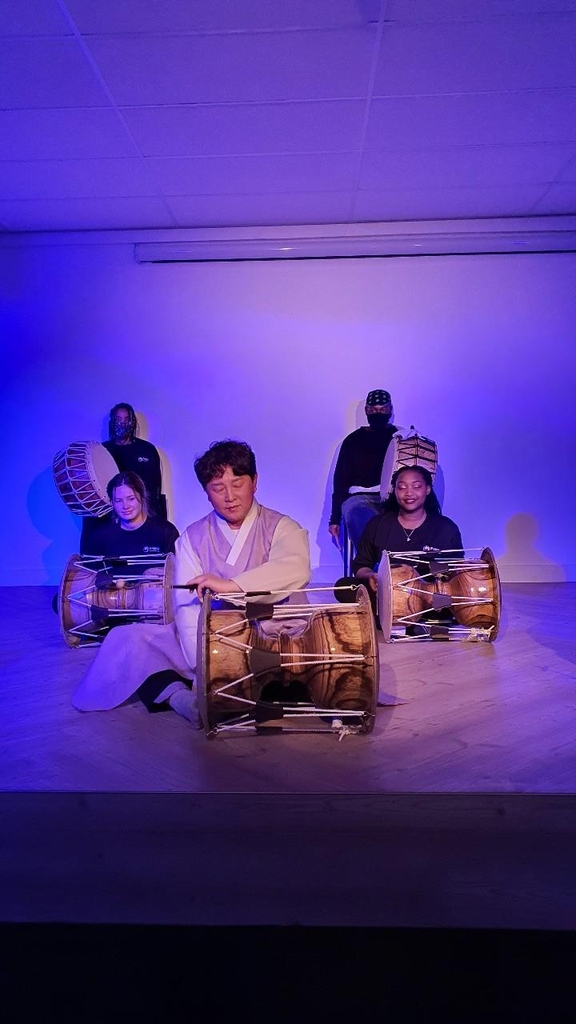 | ▲ 남아공서 펼쳐진 사물놀이 (프리토리아=연합뉴스) 김성진 특파원 = 29일(현지시간) 남아프리카공화국 수도 프리토리아의 한국문화원 강당에서 사물놀이 현지 수강생 발표회가 진행되고 있다. 2022.7.29 sungjin@yna.co.kr |
