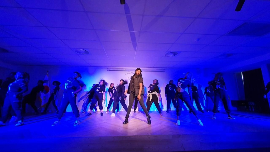 | ▲ 사물놀이에 K-팝 댄스도 함께 선보여 (프리토리아=연합뉴스) 김성진 특파원 = 29일(현지시간) 주남아공문화원 강당에서 사물놀이 발표회화 함께 진행된 현지 수강생들의 K-팝 댄스 공연 한 장면. 2022.7.29 sungjin@yna.co.kr |