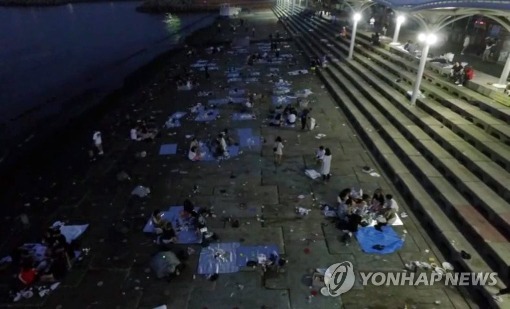 | ▲ 쓰레기 가득 찬 민락수변공원. 2018년 여름 휴가철 새벽 모습 [연합뉴스 자료사진] |