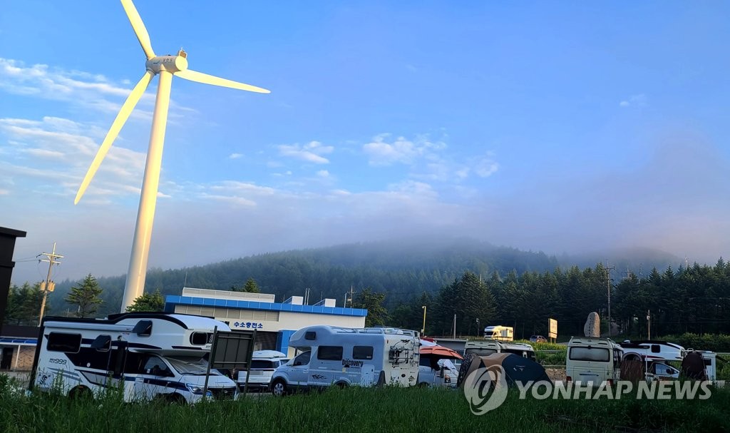 낮에도 20여 대의 캠핑카가 머무르며 시원한 백두대간 바람에 무더위를 식힌다.