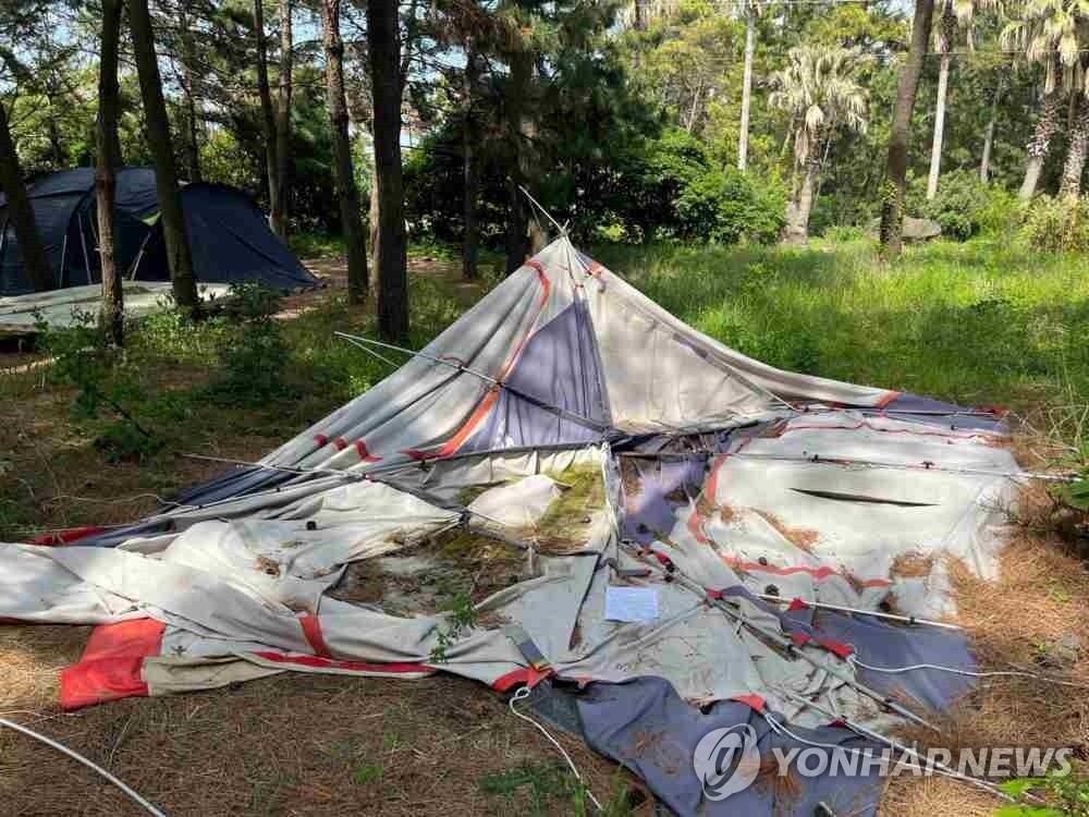 (제주=연합뉴스) 고성식 기자 = 제주 해수욕장 야영장 등지에 장기간 텐트를 쳐놓는 '장박족'에 맞서 행정기관이 한바탕 전쟁을 치르고 있다.