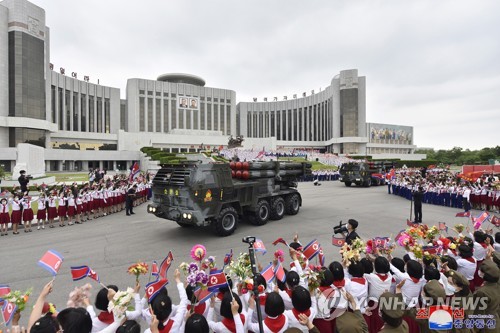 | ▲ This photo, released by North Korea's official Korean Central News Agency on June 7, 2023, shows multiple rocket launchers donated by the Korean Children's Union moving along outside Mangyongdae Schoolchildren's Palace in Pyongyang the previous day. (For Use Only in the Republic of Korea. No Redistribution) (Yonhap) |