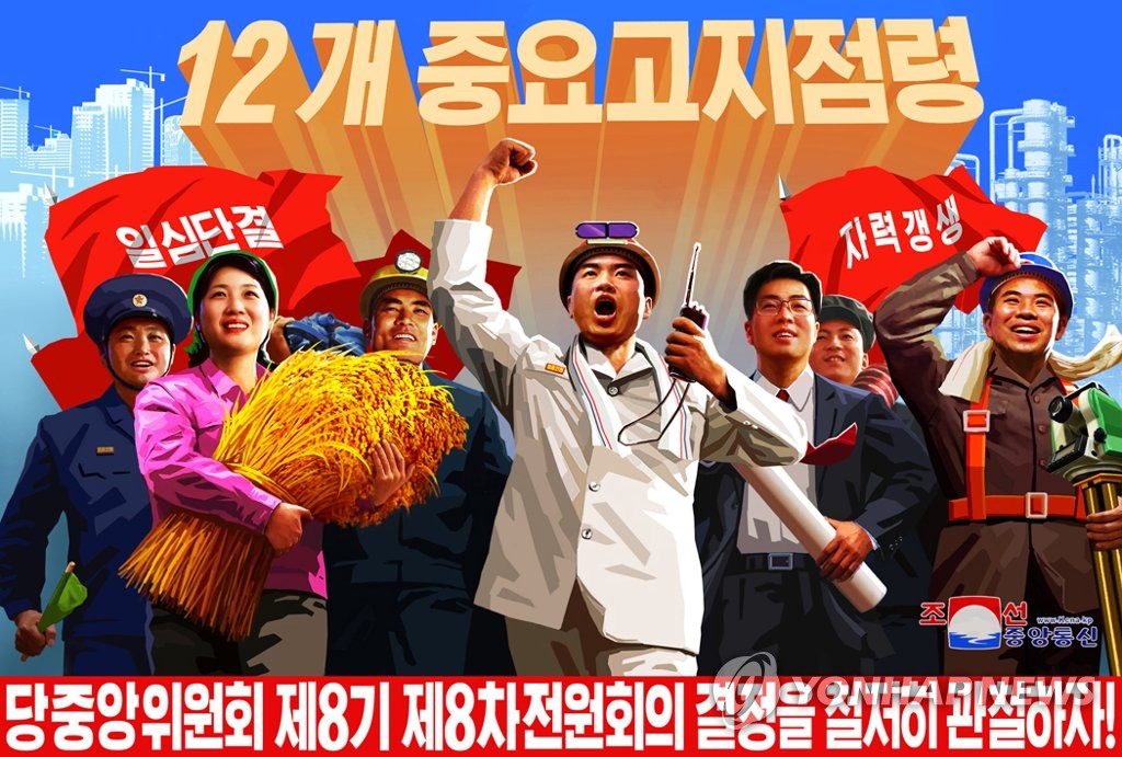 | ▲ This image, provided by the North's official Korean Central News Agency on June 21, 2023, shows a propaganda image that calls for achieving policy goals laid out during a plenary meeting of the 8th Central Committee of the ruling Workers' Party of Korea. (For Use Only in the Republic of Korea. No Redistribution) (Yonhap) |