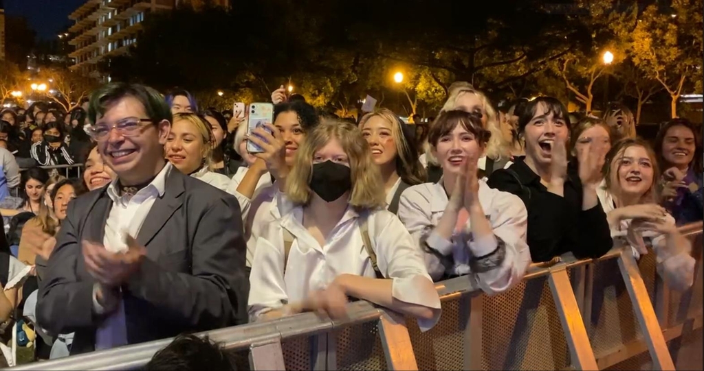 | ▲ K팝 공연에 환호하는 미국 현지 팬들 (로스앤젤레스=연합뉴스) 정윤섭 특파원 = 23일(현지시간) 미국 USC에서 열린 K팝 페스타에서 현지 팬들이 박수를 치며 환호하고 있다. 2022.09.25 jamin74@yna.co.kr |