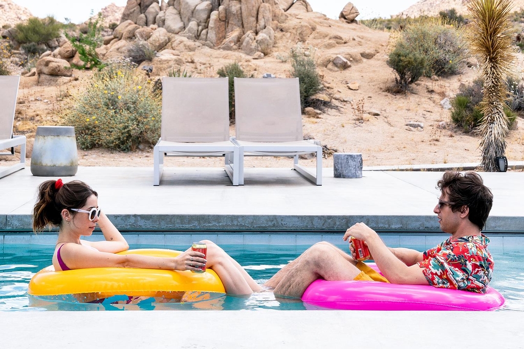 19일 먼저 개봉하는 판타지 코미디 '팜 스프링스'는 미국 캘리포니아 사막의 휴양도시 팜 스프링스로 데려간다.