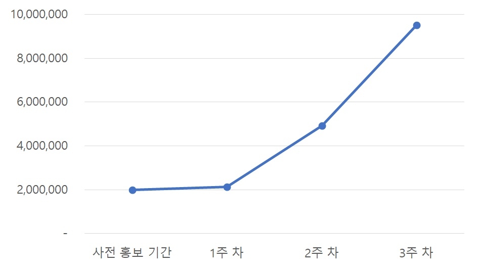 SMR 분석 결과에 따르면 '옷소매 붉은 끝동'의 클립 재생 수는 매주 전 주의 2배씩 뛰어오르며 극적인 성장세를 보였다.