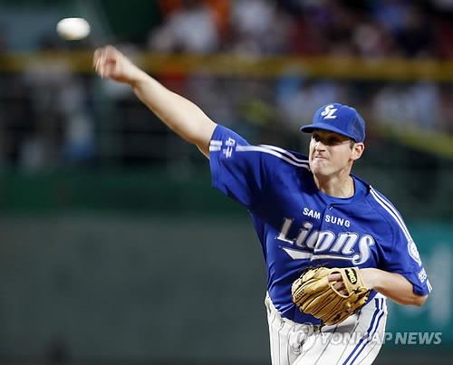 | ▲ In this file photo from Aug. 17, 2011, Doug Mathis of the Samsung Lions pitches against the SK Wyverns during a Korea Baseball Organization regular season game at Munhak Stadium in Incheon, 40 kilometers west of Seoul. (Yonhap) |