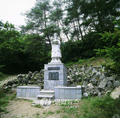 | ▲ 최양업 신부 동상 충북 제천의 배론성지에 세워진 최양업 신부 동상. 바로 옆에 최 신부의 묘소가 자리 잡고 있다. [연합뉴스 자료 사진] |