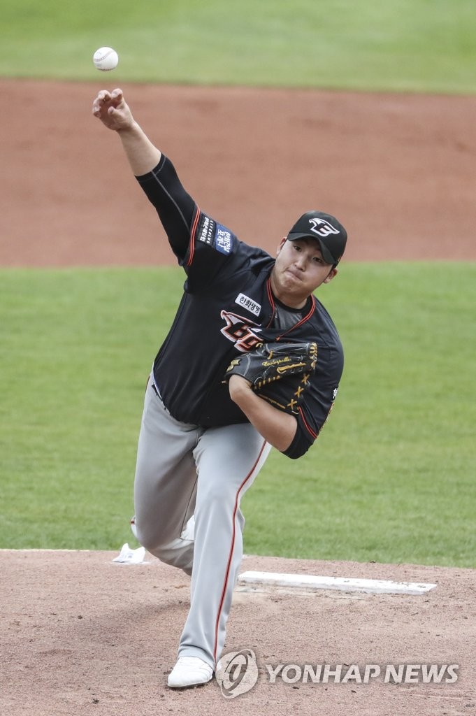 | ▲ In this file photo from May 9, 2021, Kim Min-woo of the Hanwha Eagles pitches against the LG Twins in a Korea Baseball Organization regular season game at Jamsil Baseball Stadium in Seoul. (Yonhap) |