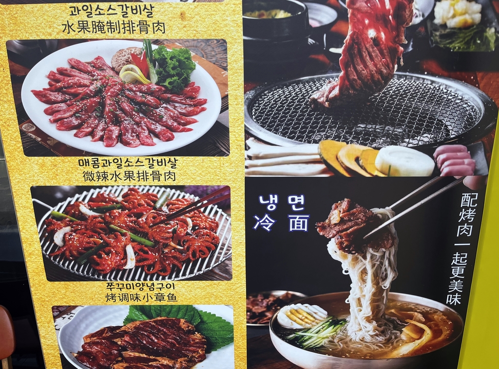 연인 사이로 보이는 20대 중국인 남녀는 능숙하게 메뉴판에 있는 양념 숯불구이와 물냉면을 주문했다.