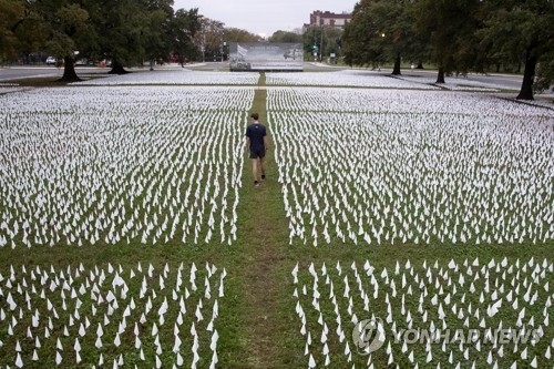 | ▲ 미국 워싱턴의 코로나19 사망자 추모 깃발들 [EPA=연합뉴스 자료사진. 재판매 및 DB 금지] |
