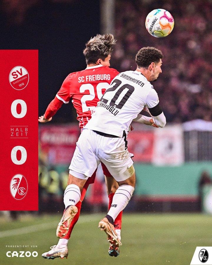 프라이부르크는 8일(한국시간) 독일 잔트하우젠의 BWT-슈타디온 암 하르트발트에서 열린 2022-2023 DFB 포칼 16강전에서 2부리그 팀인 잔트하우젠을 2-0으로 제압했다.