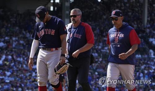 (서울=연합뉴스) 천병혁 기자 = 미국프로야구 보스턴 레드삭스의 주전 유격수 산더르 보하르츠가 경기 도중 스파이크에 찍혀 7바늘을 꿰매는 부상을 당했다.