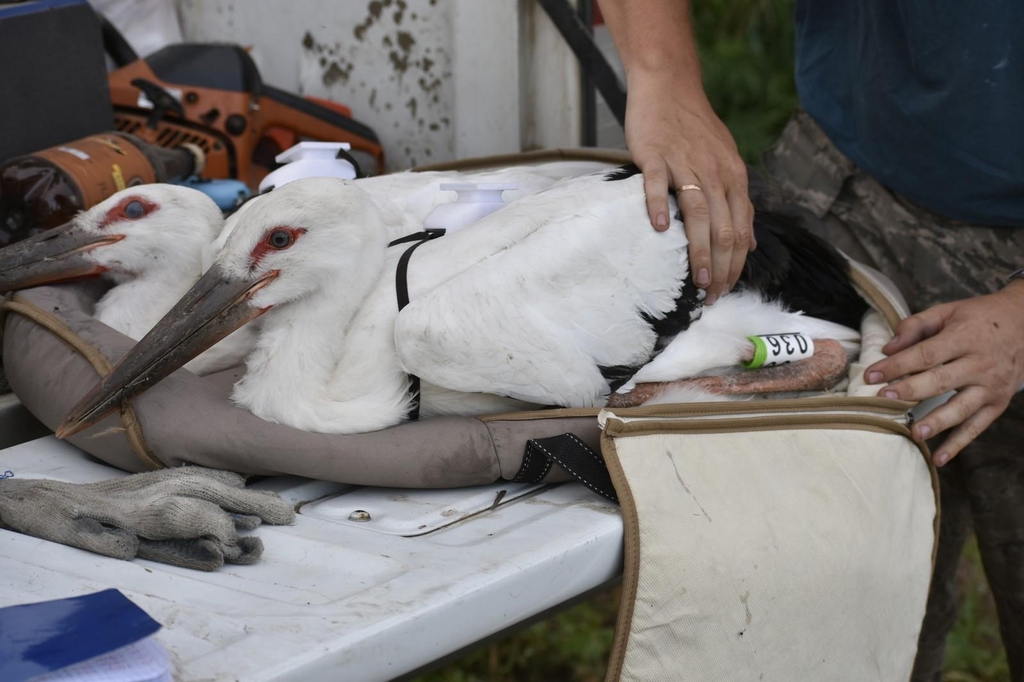 | ▲ 2019년 아무르주에서 WWF 러시아 아무르지부가 황새에 인식표를 부착하는 모습. [세계자연기금 러시아 아무르지부 제공=연합뉴스] |