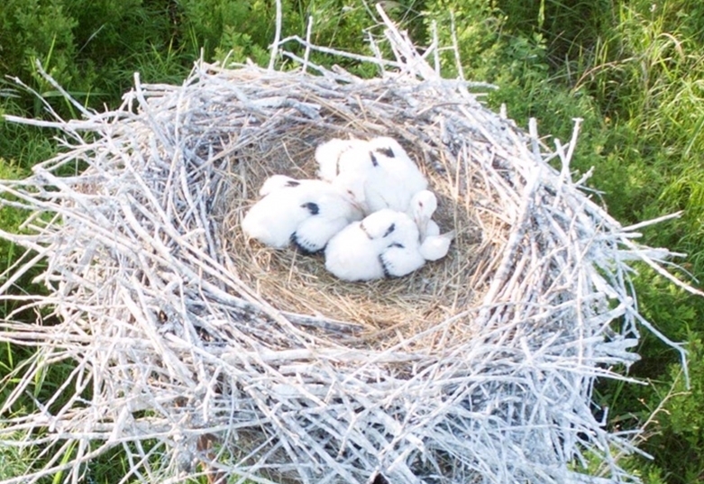 | ▲ 지난달 31일 드론으로 촬영한 인공 둥지 탑 내 새끼 황새들의 모습. [타우노프 이반 연구원 제공 = 연합뉴스] |