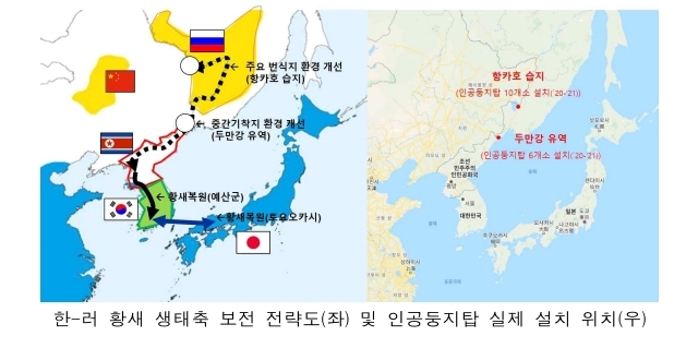 | ▲ 한국과 러시아 황새 생태 축 보전 전략도. [멸종위기종복원센터 제공 = 연합뉴스] |