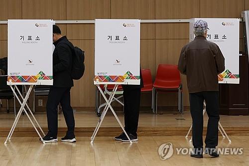 | ▲ Voters cast their ballots at a polling station in Seoul's Gangseo Ward government office on Oct. 6, 2023, the first day of the two-day early voting for the Oct. 11 by-election to select the ward's chief. The poll is of great significance to rival parties as it is considered a litmus test for the general elections in April next year. (Yonhap) |