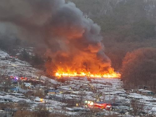 | ▲ This photo, provided by a reader, shows a fire at Guryong Village, the last remaining slum in Seoul, on Jan. 20, 2023. (PHOTO NOT FOR SALE) (Yonhap) |