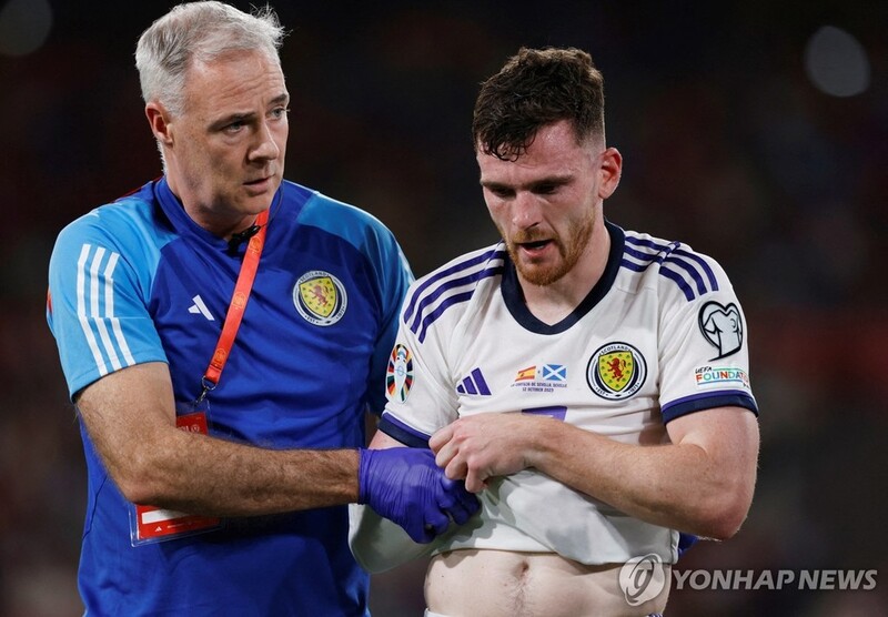 스코틀랜드 국가대표인 로버트슨은 12일 스페인을 상대로 치른 유로(유럽축구선수권대회) 2024 예선 경기에서 상대 골키퍼 우나이 시몬과 경합하다가 어깨를 다쳤다.