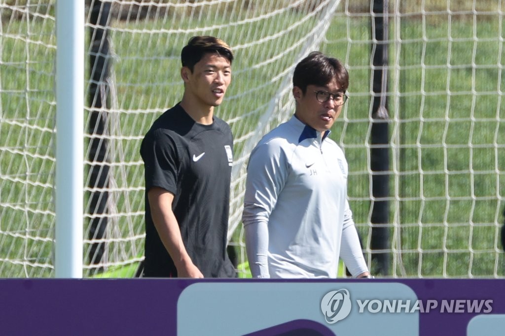 | ▲ 훈련에서 제외된 황희찬 (도하=연합뉴스) 김주성 기자 = 햄스트링 부상을 입은 축구대표팀의 황희찬이 2022 카타르 월드컵 조별리그 첫 경기 우루과이전을 하루 앞둔 23일 오전(현지시간) 카타르 도하 알에글라 훈련장에서 열린 공식훈련에서 제외된 채 훈련장 주변을 걷고 있다. 2022.11.23 utzza@yna.co.kr |