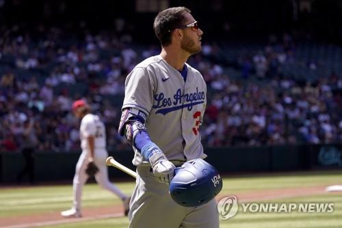 | ▲ 28일 애리조나와의 경기에서 6회초 삼진 아웃을 당한 다저스의 코디 벨린저 [AP=연합뉴스] |