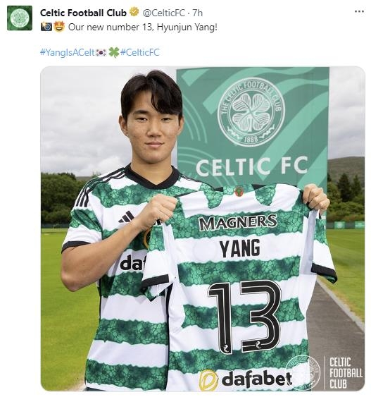 | ▲ 셀틱 입단한 양현준 [구단 트위터 캡처. 재판매 및 DB 금지] |