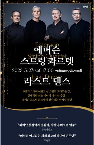 에머슨 스트링 콰르텟의 공연은 25일 광주 국립아시아문화전당을 시작으로, 26일에는 대전예술의전당, 27일 서울 예술의전당, 28일 부천아트센터에서 열린다.