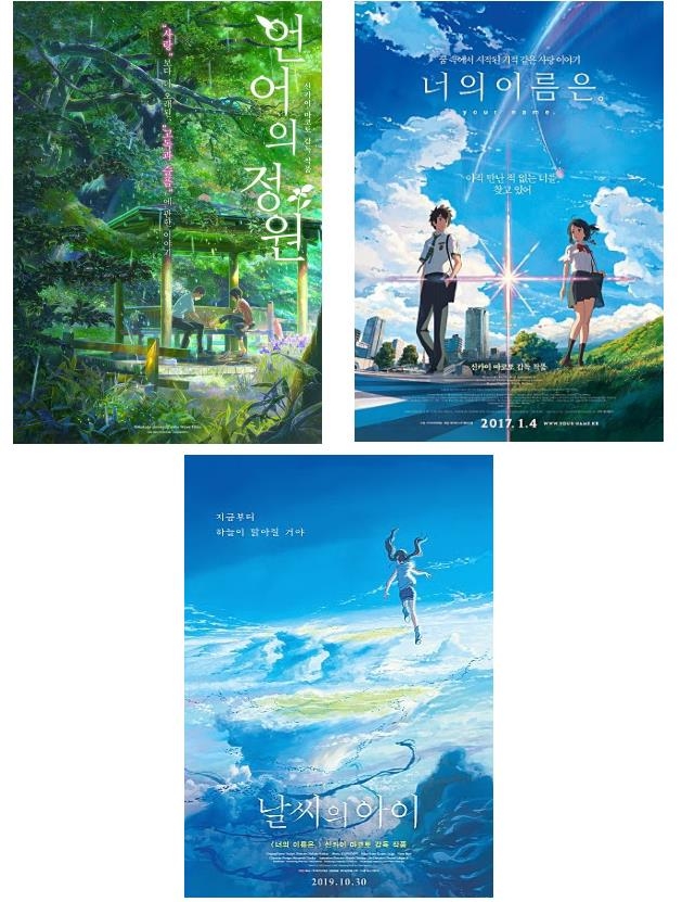 '별을 쫓는 아이'(2011)는 지하 속 신들의 세계 '아가르타'를 배경으로 지상의 소녀 아스나의 모험을 그린 판타지 애니메이션, '언어의 정원'(2013)은 비가 내리던 날 우연히 정원에서 만난 고등학생 다카오와 유키노라는 여성의 이야기를 담았다.