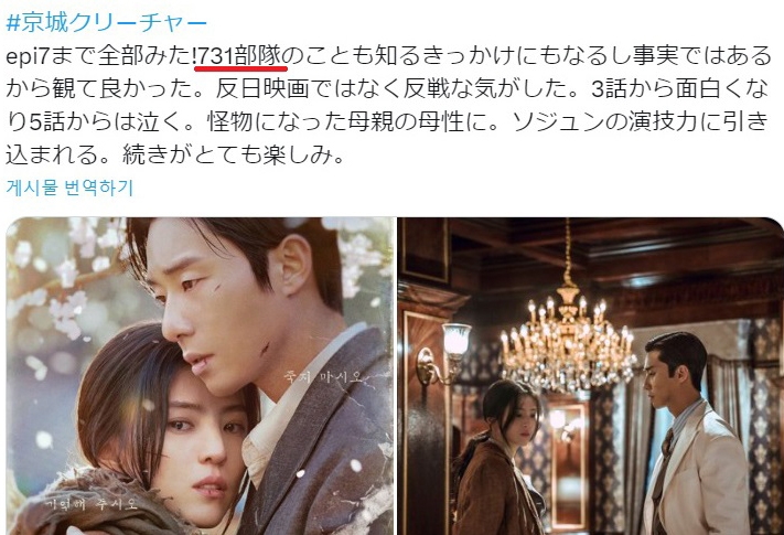 ▲ '경성크리처'에 관한 일본 누리꾼 반응 [서경덕 교수 SNS 캡처. 재판매 및 DB 금지]