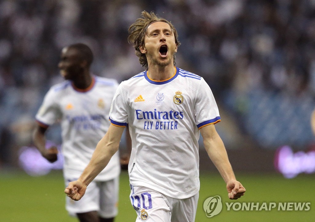 레알 마드리드는 17일(한국시간) 사우디아라비아 리야드의 킹 파흐드 인터내셔널 스타디움에서 열린 2021-2022시즌 스페인 슈퍼컵 결승에서 전반 38분 루카 모드리치의 선제 결승골과 후반 7분 카림 벤제마의 페널티킥 추가골을 엮어 아틀레틱 빌바오를 2-0으로 눌렀다.