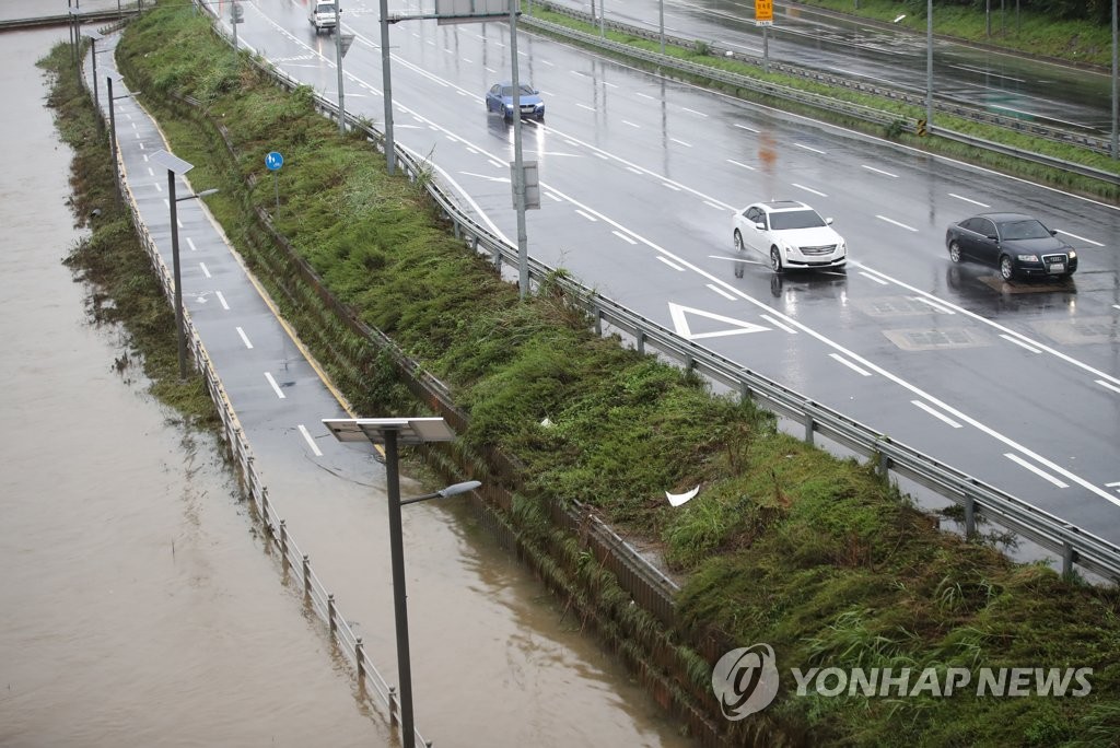 The city government said all entrances to the Dongbu Expressway that runs from Seoul's Songpa district to Uijeongbu, Gyeonggi Province, have been blocked off since 6:43 a.m. as heavy rain in the areas pushed up the water level in a nearby river.