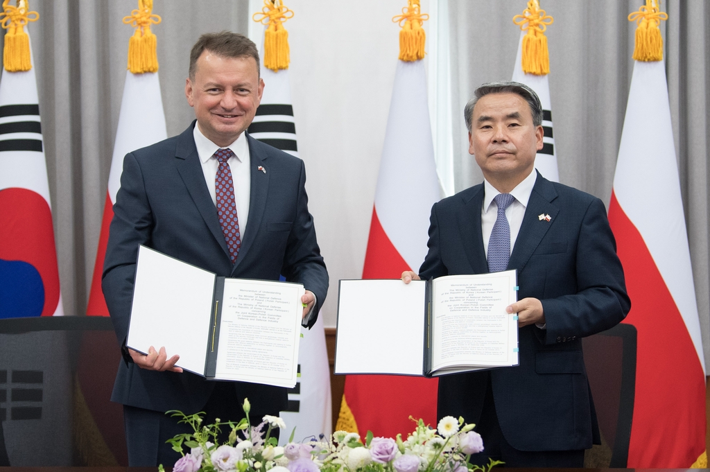 After the roll-out ceremony, Lee and Blaszczak signed a memorandum of understanding (MOU) to establish a joint ministerial committee on bilateral defense and arms industry cooperation, according to Seoul's defense ministry. They had agreed to form the regular consultative body when they met for talks in Poland in February.