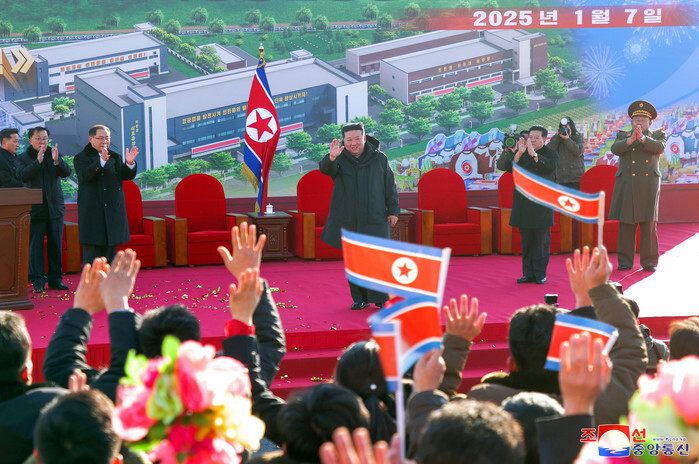North Korean leader Kim Jong-un (C) attends the inauguration ceremony of a regional factory in Jaeryong County, South Hwanghae Province, on Jan. 7, 2025, in this photo released the next day by the North's official Korean Central News Agency. The dedication of the factory is part of a project that Kim set forth in January 2024 to build modernized factories in 20 cities and counties over the next decade to enhance the living standards of the people. (For Use Only in the Republic of Korea. No Redistribution) (Yonhap)