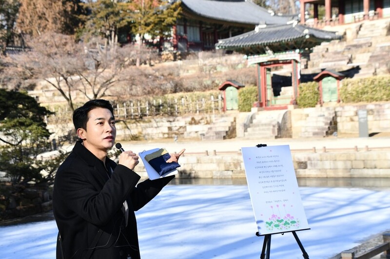 | ▲ 창덕궁 후원 해설 나선 배우 김영민 (서울=연합뉴스) 배우 김영민이 25일 서울 종로구 창덕궁에서 문화재청 궁능유적본부 홍보대사로 위촉된 뒤 일일해설사로 나서 관람객들에게 창덕궁 후원에 대한 이야기를 들려주고 있다. 2024.1.25 [문화재청 제공. 재판매 및 DB 금지] photo@yna.co.kr |