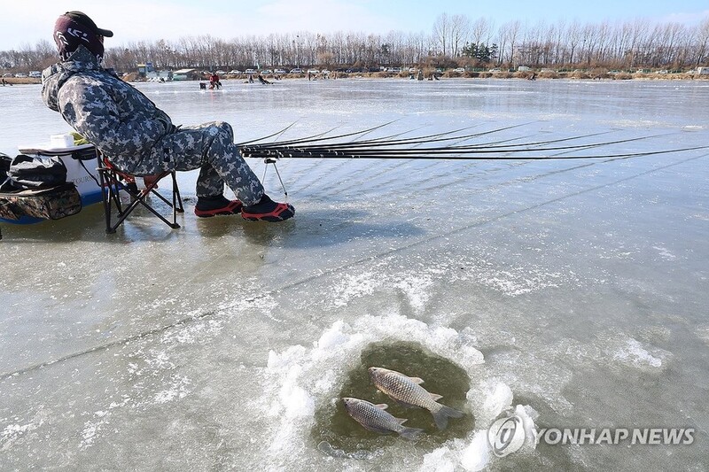 | ▲ 짜릿한 손맛 즐기는 강태공들 (인천=연합뉴스) 임순석 기자 = 추위가 한결 누그러진 28일 오후 인천 서구 검단수로에서 강태공들이 얼음낚시를 하고 있다. 2024.1.28 soonseok02@yna.co.kr |