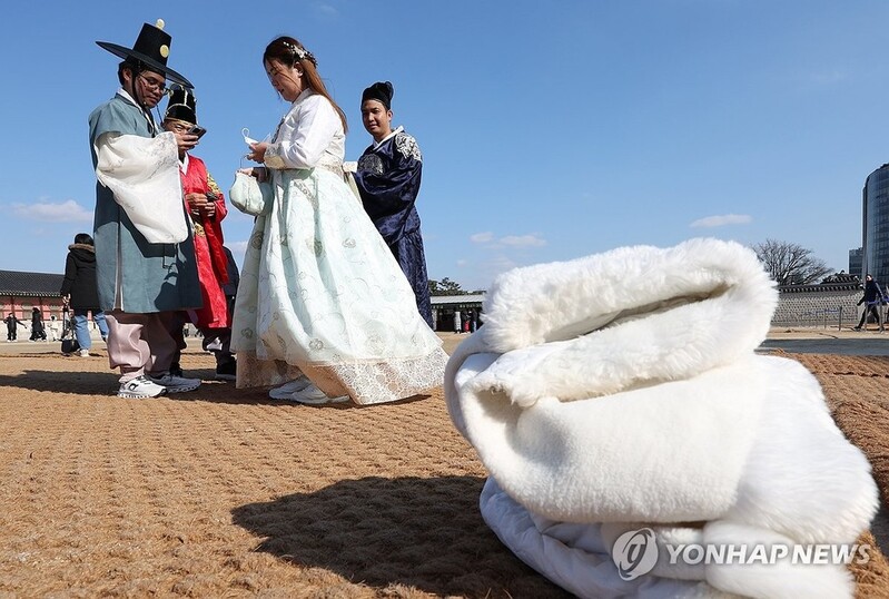 | ▲ 외투는 벗어두고 (서울=연합뉴스) 김성민 기자 = 전국이 영상 기온을 보인 28일 오후 서울 종로구 경복궁 인근에서 외국인 관광객이 외투를 바닥에 두고 기념 촬영을 하고 있다. 2024.1.28 ksm7976@yna.co.kr |