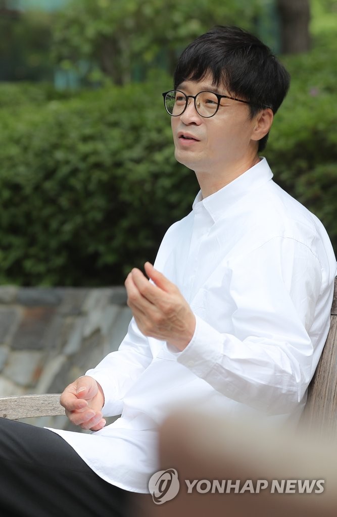 ▲ 김민기 헌정앨범 총감독 맡은 가수 박학기 (서울=연합뉴스) 류효림 기자 = '아침이슬' 50주년 김민기 헌정앨범 총감독을 맡은 가수 박학기가 서울 종로구 수송동 연합뉴스 사옥에서 인터뷰에 앞서 포즈를 취하고 있다. 2021.6.12 ryousanta@yna.co.kr